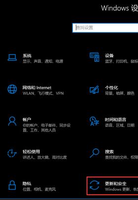 3.在Windows设置窗口中,您可以在搜索框中搜索设置,或者单击更新和安全(Windows更新、恢复、备份);